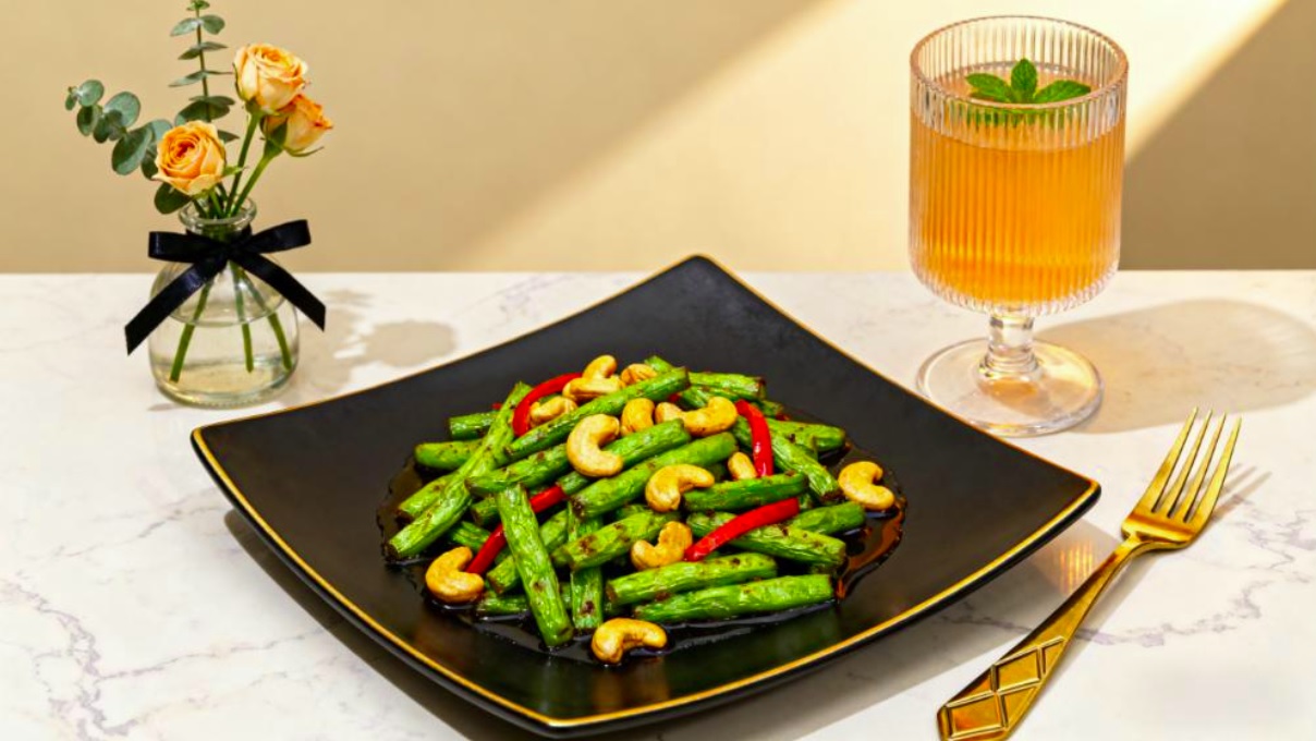 Weekly Buddhist Cuisine Menu:Stir-fried Green Beans with Cashews