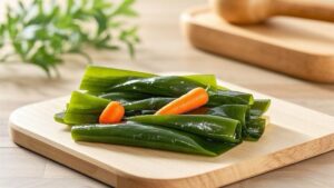 海带(学名:Laminaria japonica)是一种褐藻类海洋植物,富含碘、矿物质和膳食纤维,是一种极具营养价值的健康食材。海带常用于炖汤、凉拌、炒菜或煮粥。