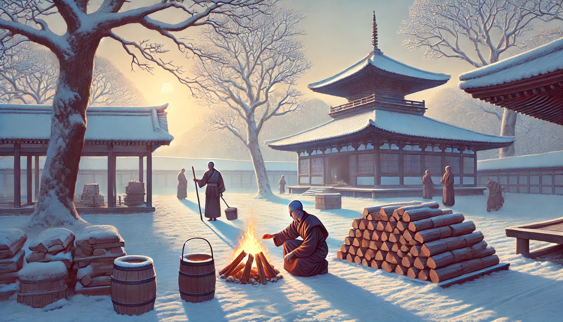 百丈禅师通过野鸭飞过的场景启发弟子的觉知。
