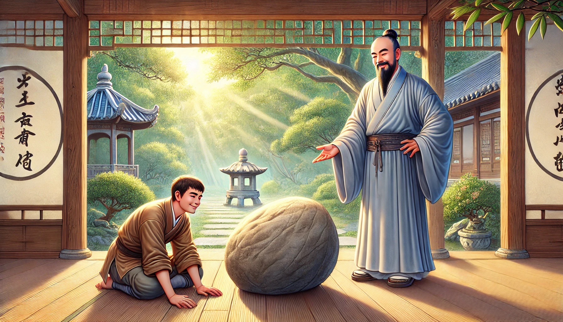 牛过窗棂 ussomc10Dec 12, 2024 牛过窗棂 背景: 赵州禅师用幽默的比喻解答禅学难题。 故事内容: 一僧问赵州:“师父,如何理解‘牛头过窗棂’的公案?” 赵州答:“牛头能过,尾巴为何过不得?” 僧问:“那尾巴该如何过?” 赵州笑道:“尾巴缩起来就过了!” 禅意: 修行中的问题并非复杂,需要灵活变通,有时放下多余的执念便可通达。 Post Views: 101 <span class="nav-subtitle screen-reader-text">Page</span> Previous Post石头搬走Next Post打破水瓶 Related Posts 我是谁 云门禅师用幽默的回答打破弟子的思维局限。 ussomc10Jan 18, 2025 风吹竹 慧能禅师用自然景象教导弟子无为而安。 ussomc10Jan 18, 2025 走路与修行 临济通过生活中的小事揭示修行的真谛。 ussomc10Jan 18, 2025