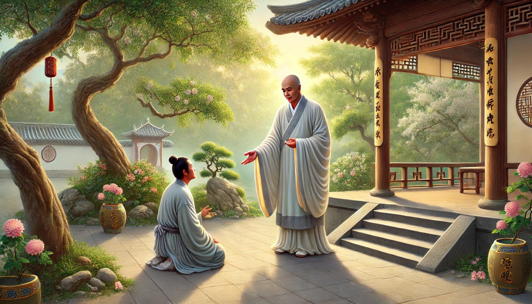 虚空落地 ussomc10Dec 14, 2024Dec 14, 2024 虚空落地 背景: 临济禅师通过一个极端的比喻点拨弟子。 故事内容: 弟子问临济:“师父,如何体验空性?” 临济答:“虚空落地,地无可依。” 弟子问:“虚空如何能落地?” 临济说:“你执着虚空,便永远无法真正见到它。” 禅意: 修行的关键是超越对“空”的执念,空并非具体的状态,而是无分别的觉知。 Post Views: 95 <span class="nav-subtitle screen-reader-text">Page</span> Previous Post佛在厨房Next Post道在脚下 Related Posts 脚步悟道 临济通过脚步声让弟子顿悟。 ussomc10Jan 16, 2025 空钵子 德山禅师用空钵象征心的空性。 ussomc10Jan 16, 2025 一炷香 云门禅师用焚香的举动点化弟子。 ussomc10Jan 16, 2025