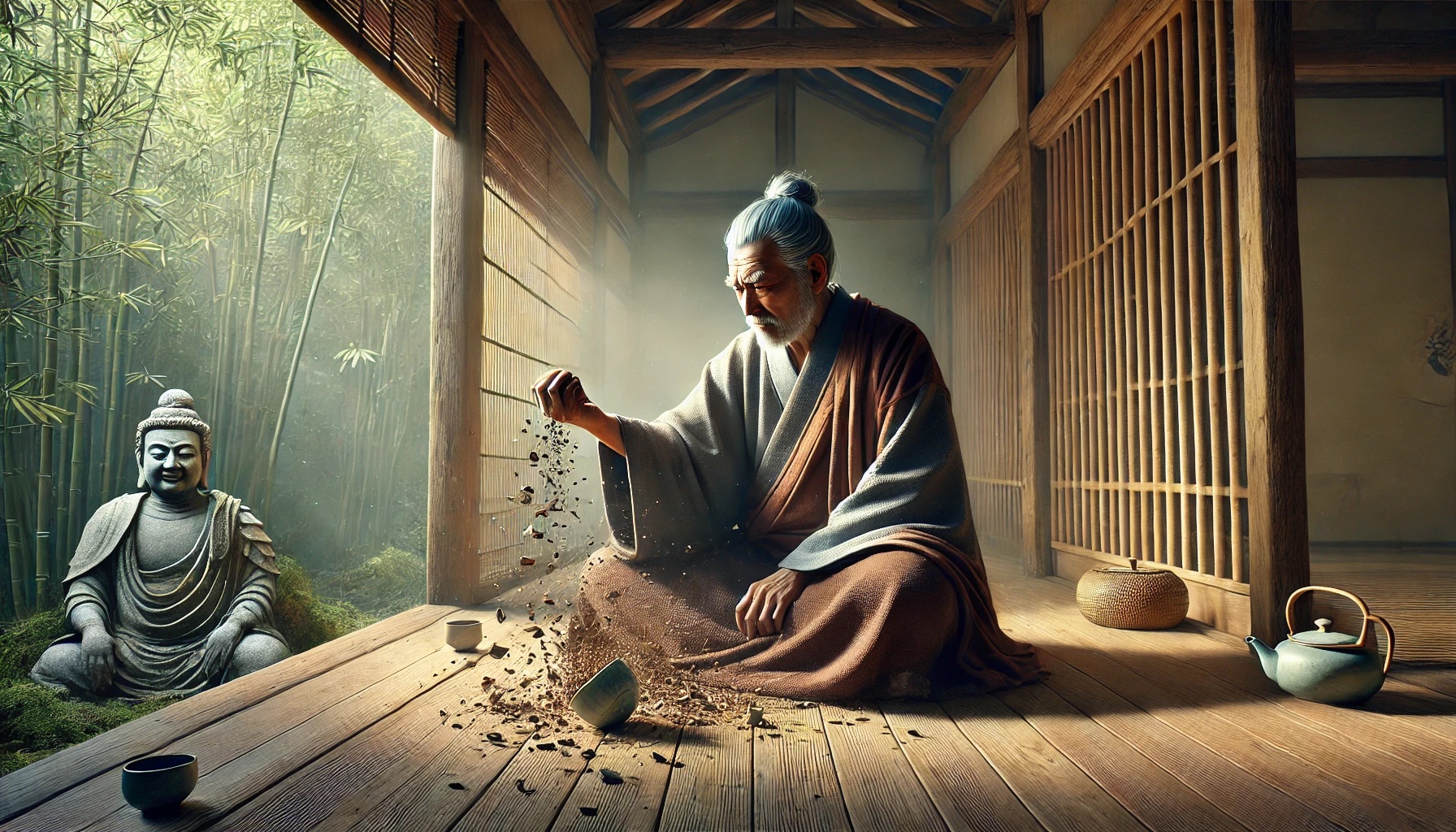 一步门外 ussomc10Dec 16, 2024 一步门外 背景: 云门禅师通过门的比喻打破弟子的执念。 故事内容: 弟子问云门:“师父,如何进入佛法的世界?” 云门答:“你已站在门外。” 弟子问:“为何看不到门?” 云门说:“因为你眼里只有墙。” 禅意: 佛法之门一直敞开,执念如墙,遮蔽了真实的觉悟。修行需放下执念,才能迈入佛法。 Post Views: 117 <span class="nav-subtitle screen-reader-text">Page</span> Previous Post捏碎茶碗Next Post河边坐禅 Related Posts 脚步悟道 临济通过脚步声让弟子顿悟。 ussomc10Jan 16, 2025 空钵子 德山禅师用空钵象征心的空性。 ussomc10Jan 16, 2025 一炷香 云门禅师用焚香的举动点化弟子。 ussomc10Jan 16, 2025