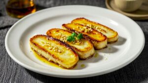 This is a simple and flavorful vegan dish where thick slices of king oyster mushrooms are pan-seared to create a crispy, golden exterior while maintaining a juicy and tender interior.