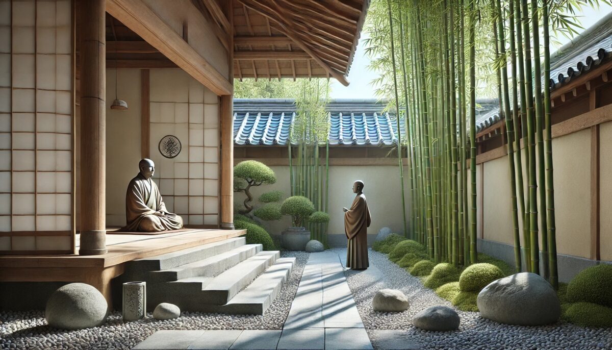 竹影扫阶 ussomc10Dec 21, 2024Jan 24, 2025 竹影扫阶 背景: 德山禅师用竹影与尘埃的关系揭示清净心。 故事内容: 弟子问德山:“师父,如何保持心的清净?” 德山指着庭院的竹影,说:“竹影扫阶,尘不动。” 弟子问:“为何尘不动?” 德山答:“心若无执,外物再动,亦不染尘。” 禅意: 修行的清净心在于超越外物的影响,心若无执,外境无法扰乱本性。 Post Views: 81 <span class="nav-subtitle screen-reader-text">Page</span> Previous Post天上的云Next Post一切皆空 Related Posts 脚步悟道 临济通过脚步声让弟子顿悟。 ussomc10Jan 16, 2025 空钵子 德山禅师用空钵象征心的空性。 ussomc10Jan 16, 2025 一炷香 云门禅师用焚香的举动点化弟子。 ussomc10Jan 16, 2025