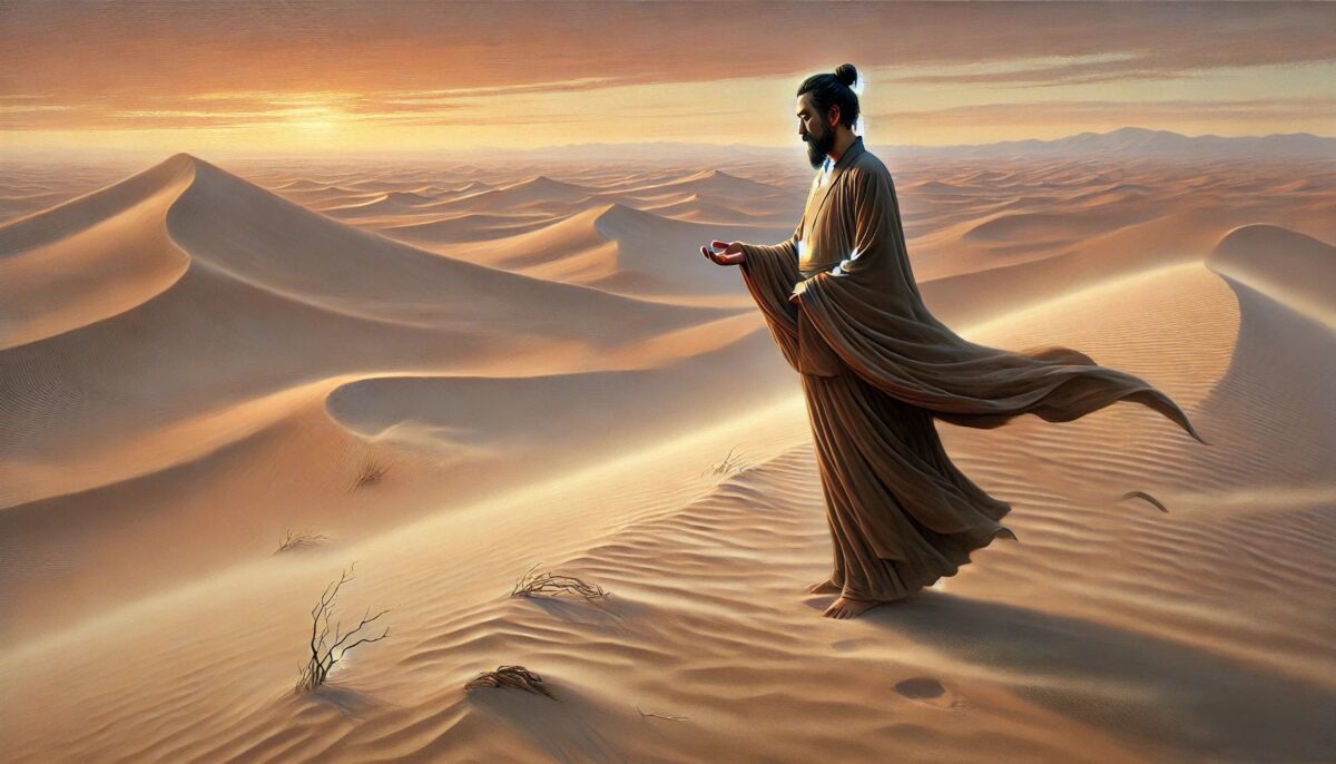 风吹沙 ussomc10Dec 21, 2024 风吹沙 背景: 慧能禅师通过风吹沙的现象解释修行的净化。 故事内容: 弟子问慧能:“师父,修行是否能去除心中的杂念?” 慧能指着地上的沙子,说:“风吹过,沙自然散。” 弟子问:“为何沙能散?” 慧能答:“心若无执,念如沙,风过自清。” 禅意: 修行如风吹沙,内心不执着,杂念便自然消散,清净自显。 Post Views: 98 <span class="nav-subtitle screen-reader-text">Page</span> Previous Post山高水长Next Post枯木生花 Related Posts 鱼跃龙门 石头禅师用鱼跃龙门的象征解释修行的飞跃。 ussomc10Jan 18, 2025 滴水入海 黄檗禅师用水滴归海比喻修行的归一。 ussomc10Jan 18, 2025 雪中修行 慧可禅师用雪中禅坐的体验讲述修行的坚定。 ussomc10Jan 18, 2025
