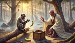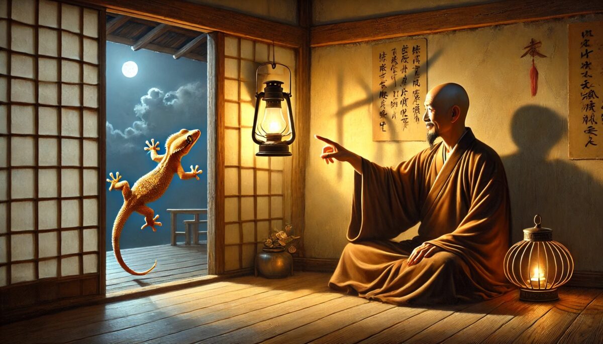 壁虎和灯 ussomc10Dec 22, 2024 壁虎和灯 背景: 赵州禅师用壁虎追灯光的现象解答弟子的困惑。 故事内容: 弟子问赵州:“师父,修行中如何追求光明?” 赵州指着一只追逐灯光的壁虎,说:“光是追不到的,需找灯的源头。” 弟子恍然:“我应寻找内心的源头。” 禅意: 修行的光明不在外界,而在内心。追逐表象只会徒劳,回归本源方能见真。 Post Views: 89 <span class="nav-subtitle screen-reader-text">Page</span> Previous Post猴子和香蕉 Next Post禅师的猫 Related Posts 我是谁 云门禅师用幽默的回答打破弟子的思维局限。 ussomc10Jan 18, 2025 风吹竹 慧能禅师用自然景象教导弟子无为而安。 ussomc10Jan 18, 2025 走路与修行 临济通过生活中的小事揭示修行的真谛。 ussomc10Jan 18, 2025
