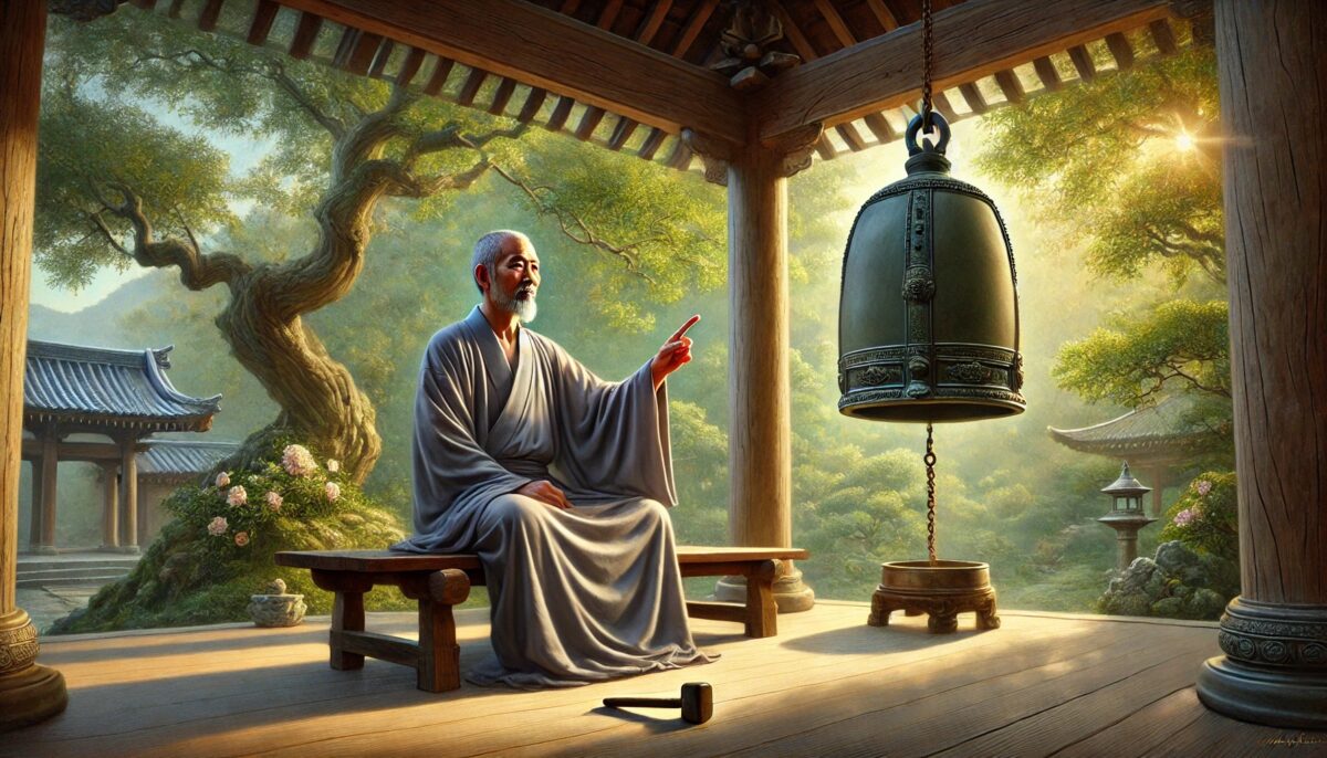 南泉指着寺中的钟,问:“钟声从何而来?”