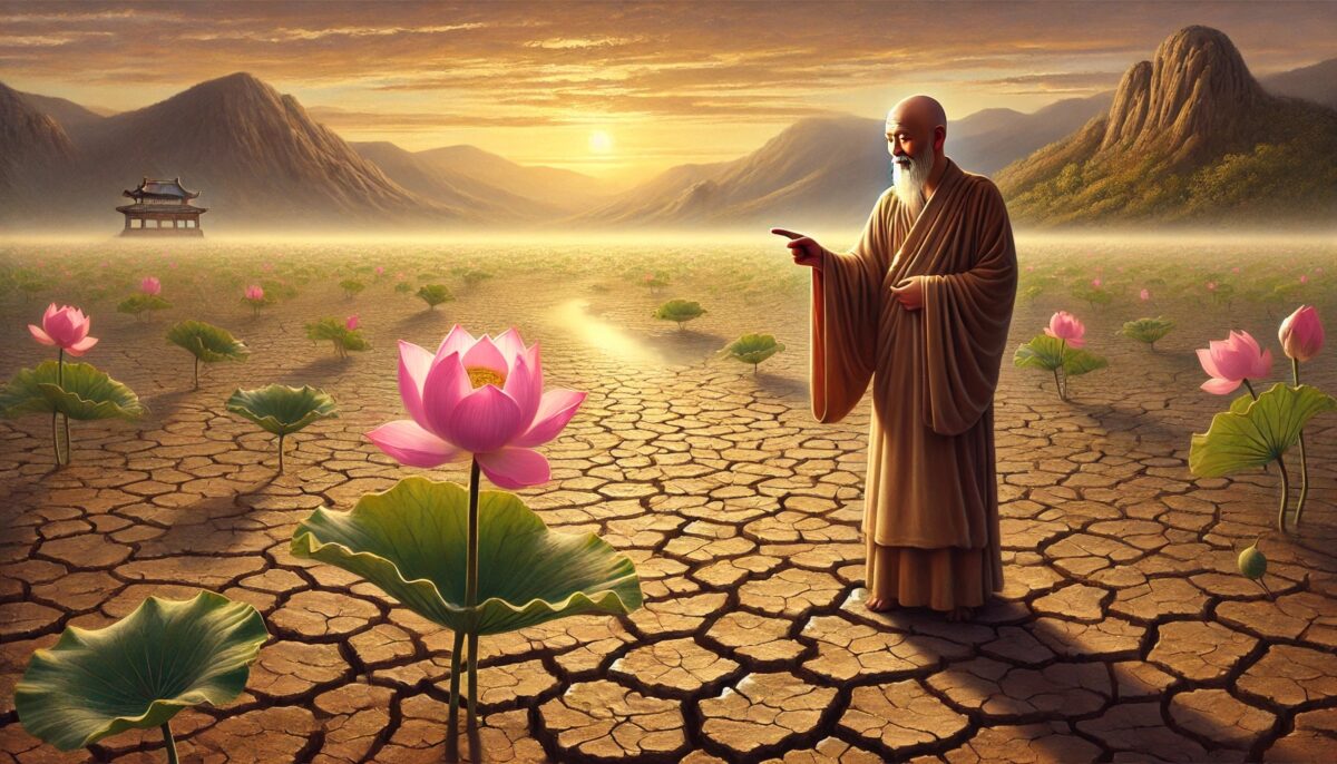 慧能禅师用荒地开莲花的比喻教化弟子修行的可能性。