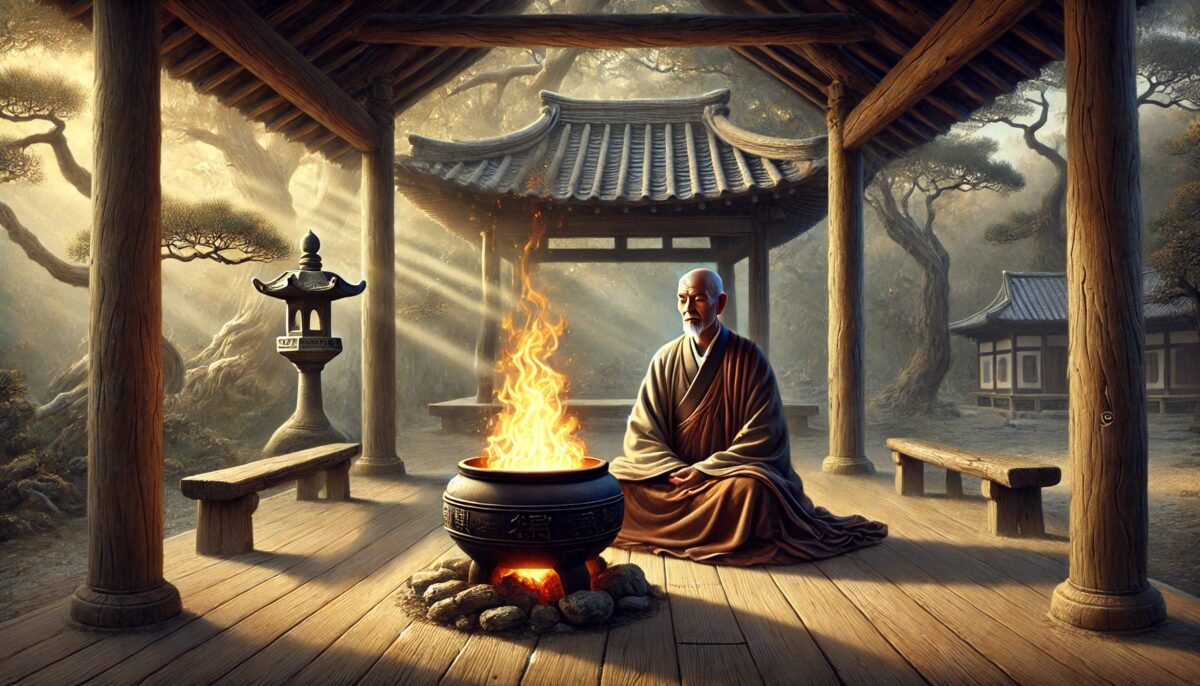 南泉说:“修行如炉火,精进如添柴,心中火焰才能长燃。”