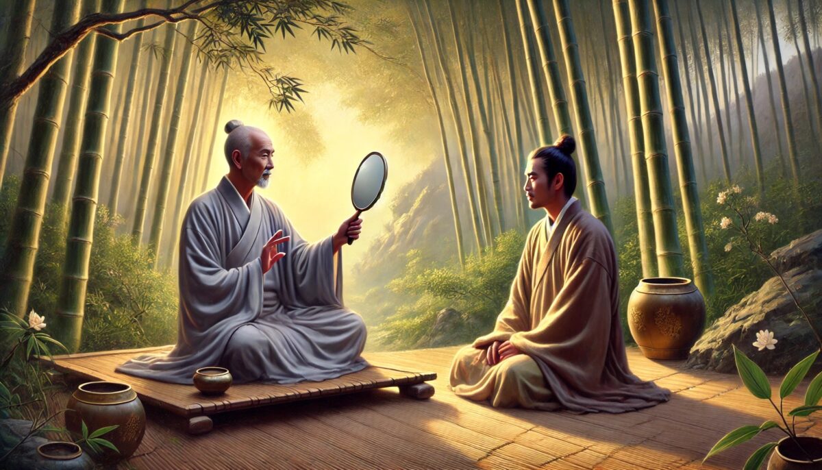 心镜无尘 ussomc10Dec 23, 2024 心镜无尘 背景: 慧能禅师通过著名的“无心”观点直指觉悟的本质。 故事内容: 弟子诵道:“身是菩提树,心如明镜台,时时勤拂拭,莫使惹尘埃。” 慧能听后说:“菩提本无树,明镜亦非台,本来无一物,何处惹尘埃?” 弟子闻言顿悟:“修行不在拂拭,而在本心的空性。” 禅意: 修行的核心在于明心见性,一切执着于形象或比喻,都是对本性的遮蔽。 Post Views: 84 <span class="nav-subtitle screen-reader-text">Page</span> Previous Post说与不说Next Post直指 Related Posts 一字禅 云门禅师用一个字回答修行的奥义。 ussomc10Jan 12, 2025 无念 慧可禅师用日常经验启发弟子。 ussomc10Jan 12, 2025 树上安住 鸟巢禅师用自己的生活方式比喻心的安定。 ussomc10Jan 12, 2025Jan 20, 2025