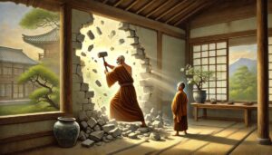 慧能禅师通过扫地的比喻教化众生内心的清净。