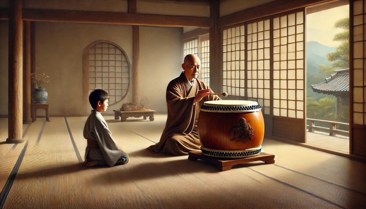 临济禅师通过木鱼的敲击教化众生对修行的专注。