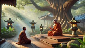 青山与流水 ussomc10Dec 28, 2024 青山与流水 背景: 石头禅师通过自然景象点拨弟子对佛性的觉知。 故事内容: 弟子问:“师父,什么是道?” 石头答:“青山不动,流水常流。” 弟子问:“这与修行有何关系?” 石头说:“你若能如山般安定,似水般随缘,便在道中。” 禅意: 修行需具备山的稳定和水的随缘,超越执着与抗拒,自然与道合一。 Post Views: 83 <span class="nav-subtitle screen-reader-text">Page</span> Previous Post一句道破 Next Post开门即道 Related Posts 一字禅 云门禅师用一个字回答修行的奥义。 ussomc10Jan 12, 2025 无念 慧可禅师用日常经验启发弟子。 ussomc10Jan 12, 2025 树上安住 鸟巢禅师用自己的生活方式比喻心的安定。 ussomc10Jan 12, 2025Jan 20, 2025