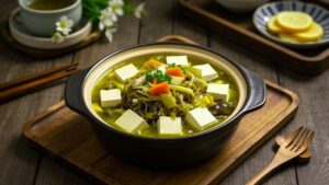 这是一道酸爽开胃的斋食料理,酸菜的独特风味与豆腐的嫩滑口感相结合,汤汁醇厚,简单易做,是一道适合日常食用的健康素食煲。