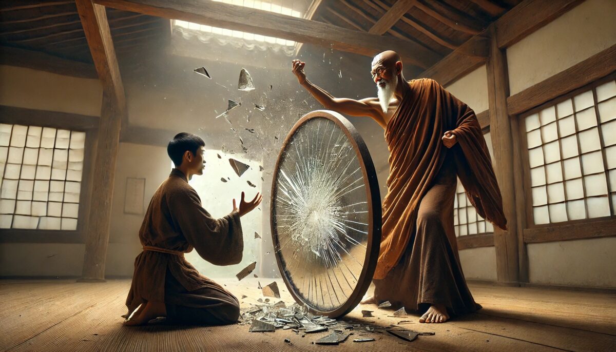 明镜抛地 ussomc10Dec 30, 2024 明镜抛地 背景: 临济禅师通过激烈的行为打破弟子的分别心。 故事内容: 弟子问:“师父,如何修行才能明心见性?” 临济拿起寺内的明镜,猛然摔碎在地,说:“心若如镜,何须外求?” 弟子大悟:“修行的关键是内心的觉照,而非外在的依赖。” 禅意: 佛法不在外在的形式,而在内心的觉知。依赖外物会阻碍对本性的认知。 Post Views: 89 <span class="nav-subtitle screen-reader-text">Page</span> Previous Post非心非佛Next Post一字禅 Related Posts 一字禅 云门禅师用一个字回答修行的奥义。 ussomc10Jan 12, 2025 无念 慧可禅师用日常经验启发弟子。 ussomc10Jan 12, 2025 树上安住 鸟巢禅师用自己的生活方式比喻心的安定。 ussomc10Jan 12, 2025Jan 20, 2025