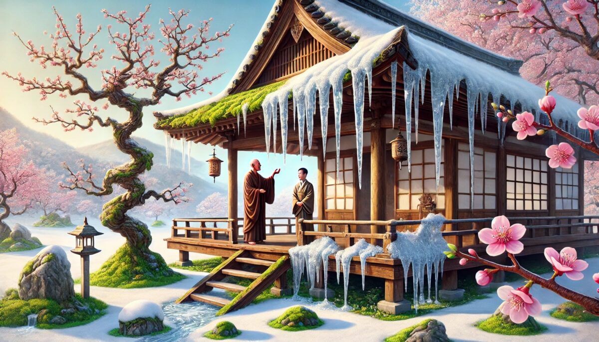 德山禅师用积雪消融的现象阐明修行的缓慢成效。