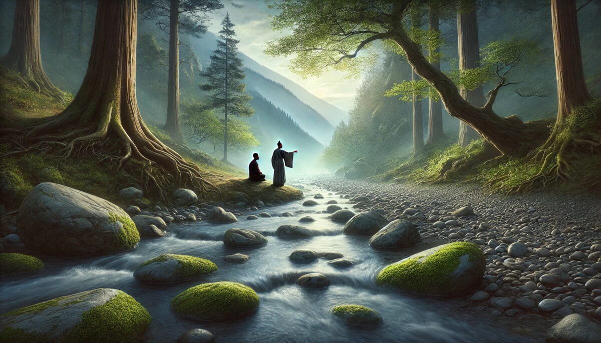 南泉禅师用山间断流的现象教化众生坚持修行。