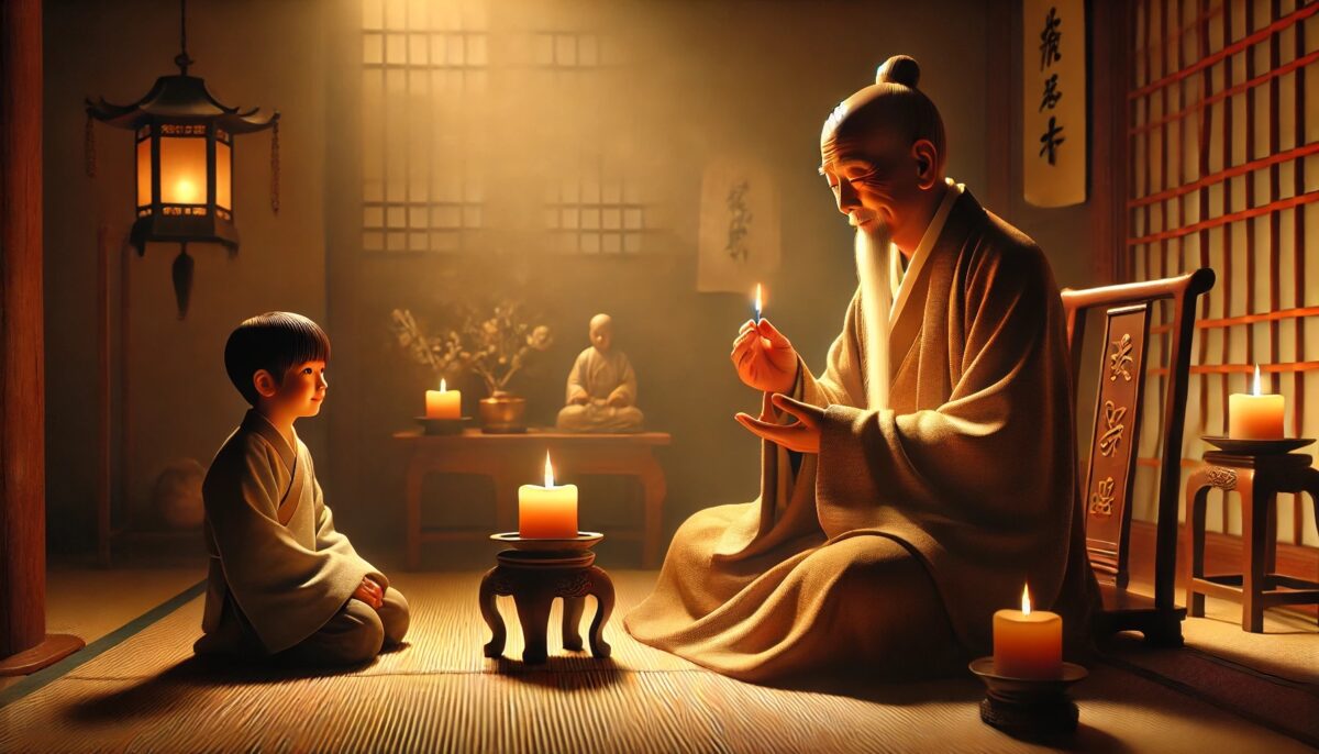 南泉禅师用蜡烛的比喻回答弟子对内在光明的疑问。