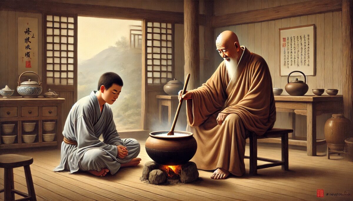 赵州禅师用煮粥的场景教化弟子修行的平等心。