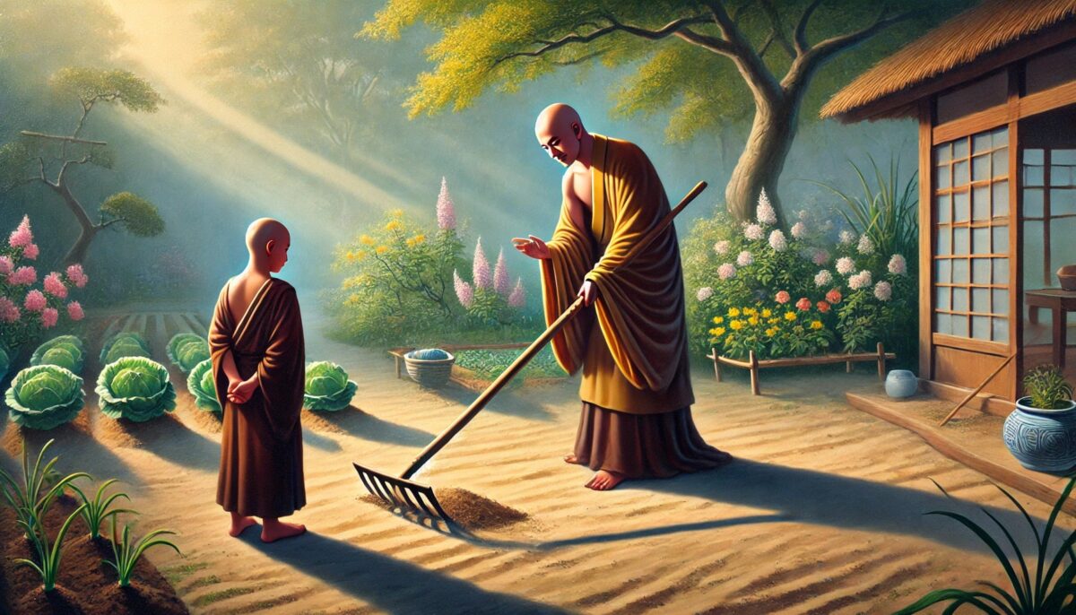 锄地即道 ussomc10Jan 2, 2025 锄地即道 背景: 南泉禅师通过劳作直指修行的日常性。 故事内容: 弟子问南泉:“师父,修行何时开始?” 南泉正在锄地,他说:“此刻即是。” 弟子追问:“为何锄地也是修行?” 南泉答:“心在锄地上,便已在道中。” 禅意: 修行不在特别的场所或时刻,专注于当下的行动,就是修行。 Post Views: 120 <span class="nav-subtitle screen-reader-text">Page</span> Previous Post灯下不明Next Post见山是山 Related Posts 一字禅 云门禅师用一个字回答修行的奥义。 ussomc10Jan 12, 2025 无念 慧可禅师用日常经验启发弟子。 ussomc10Jan 12, 2025 树上安住 鸟巢禅师用自己的生活方式比喻心的安定。 ussomc10Jan 12, 2025Jan 20, 2025