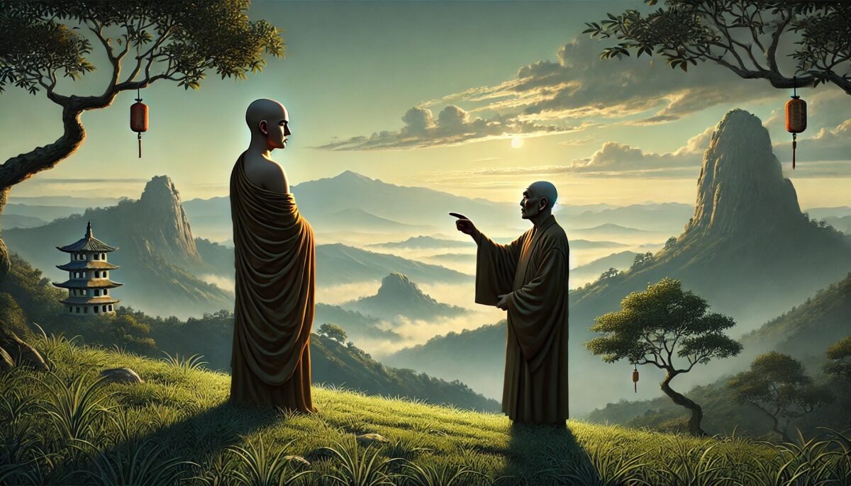 千里之外 ussomc10Jan 3, 2025 千里之外 背景: 黄檗禅师用距离的比喻点拨弟子对觉悟的误解。 故事内容: 弟子问黄檗:“师父,觉悟是否遥远?” 黄檗答:“千里之外。” 弟子追问:“为何如此远?” 黄檗说:“因你心不在此,执着于远处。” 禅意: 觉悟看似遥远,但只因执着外求。心若回归当下,觉悟即在眼前。 Post Views: 93 <span class="nav-subtitle screen-reader-text">Page</span> Previous Post山中钟声Next Post破屋与阳光 Related Posts 脚步悟道 临济通过脚步声让弟子顿悟。 ussomc10Jan 16, 2025 空钵子 德山禅师用空钵象征心的空性。 ussomc10Jan 16, 2025 一炷香 云门禅师用焚香的举动点化弟子。 ussomc10Jan 16, 2025