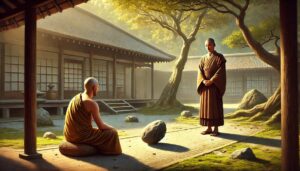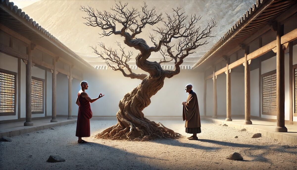 推倒枯树 ussomc10Jan 3, 2025 推倒枯树 背景: 南泉禅师用枯树的比喻解释修行的放下。 故事内容: 弟子问南泉:“师父,如何放下执念?” 南泉指着院中一棵枯树,说:“推倒它。” 弟子问:“枯树如何放下?” 南泉说:“你若不再执着于它,它已倒。” 禅意: 放下执念无需强求,只需不再执着,内心自然清净。 Post Views: 106 <span class="nav-subtitle screen-reader-text">Page</span> Previous Post流水洗心 Next Post落地之石 Related Posts 脚步悟道 临济通过脚步声让弟子顿悟。 ussomc10Jan 16, 2025 空钵子 德山禅师用空钵象征心的空性。 ussomc10Jan 16, 2025 一炷香 云门禅师用焚香的举动点化弟子。 ussomc10Jan 16, 2025