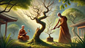 修行的负担不是外界的压力,而是内心的执念,放下心中的石头,觉悟自然轻松。