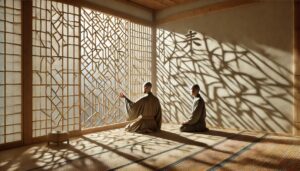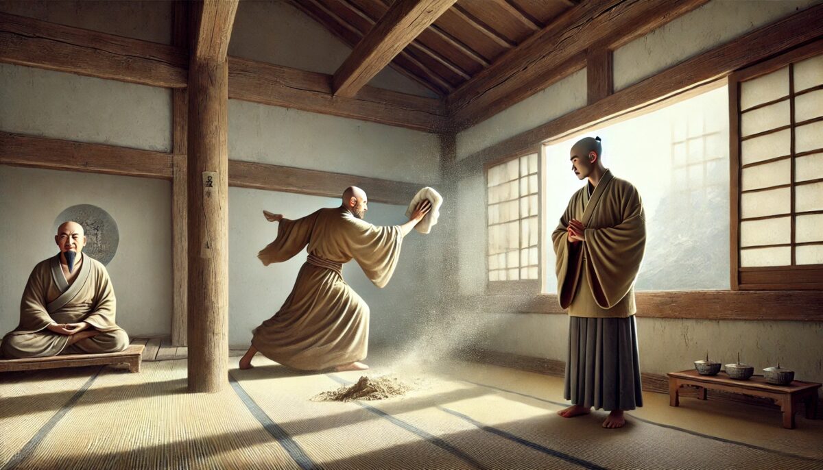 临济禅师用擦墙的行动点拨弟子对修行的清扫。