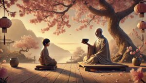 影与光 ussomc10Jan 5, 2025Jan 21, 2025 影与光 背景: 达摩用自然现象教导弟子佛法的本质。 故事内容: 弟子问达摩:“师父,什么是佛性?” 达摩指着地上的影子说:“若没有光,如何有影?” 弟子问:“那影子是什么?” 达摩答:“虽随光而现,却并非光。” 禅意: 佛性如光,虽显现于现象中,但却超越一切表象。 Post Views: 92 <span class="nav-subtitle screen-reader-text">Page</span> Previous Post空钵Next Post十牛图 Related Posts 一字禅 云门禅师用一个字回答修行的奥义。 ussomc10Jan 12, 2025 无念 慧可禅师用日常经验启发弟子。 ussomc10Jan 12, 2025 树上安住 鸟巢禅师用自己的生活方式比喻心的安定。 ussomc10Jan 12, 2025Jan 20, 2025