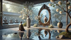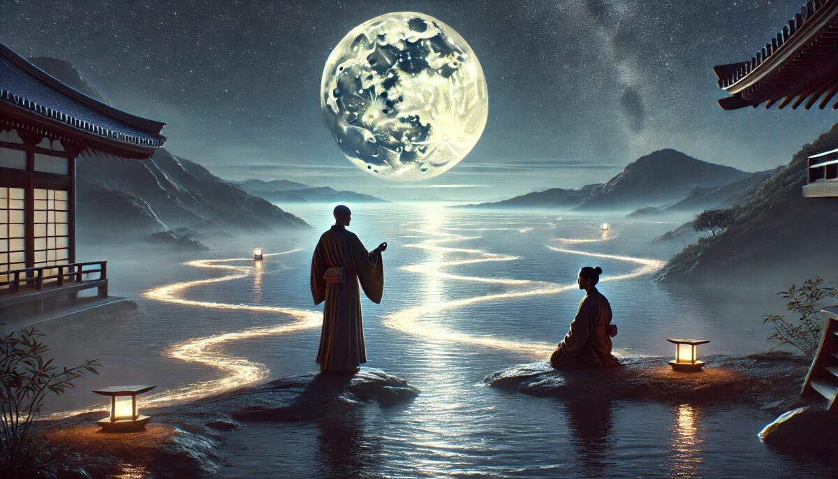月映千江 ussomc10Jan 5, 2025 月映千江 背景: 石头禅师用月亮映照河流的景象阐述佛性的无分别。 故事内容: 弟子问石头:“师父,佛性是否因人而异?” 石头答:“月映千江,处处无差。” 弟子问:“为何无差?” 石头说:“因月亮不动,水中皆同。” 禅意: 佛性如月,无论环境如何,始终不变。修行的关键是认识到本性无二。 Post Views: 80 <span class="nav-subtitle screen-reader-text">Page</span> Previous Post渡水而行Next Post镜中花 Related Posts 脚步悟道 临济通过脚步声让弟子顿悟。 ussomc10Jan 16, 2025 空钵子 德山禅师用空钵象征心的空性。 ussomc10Jan 16, 2025 一炷香 云门禅师用焚香的举动点化弟子。 ussomc10Jan 16, 2025