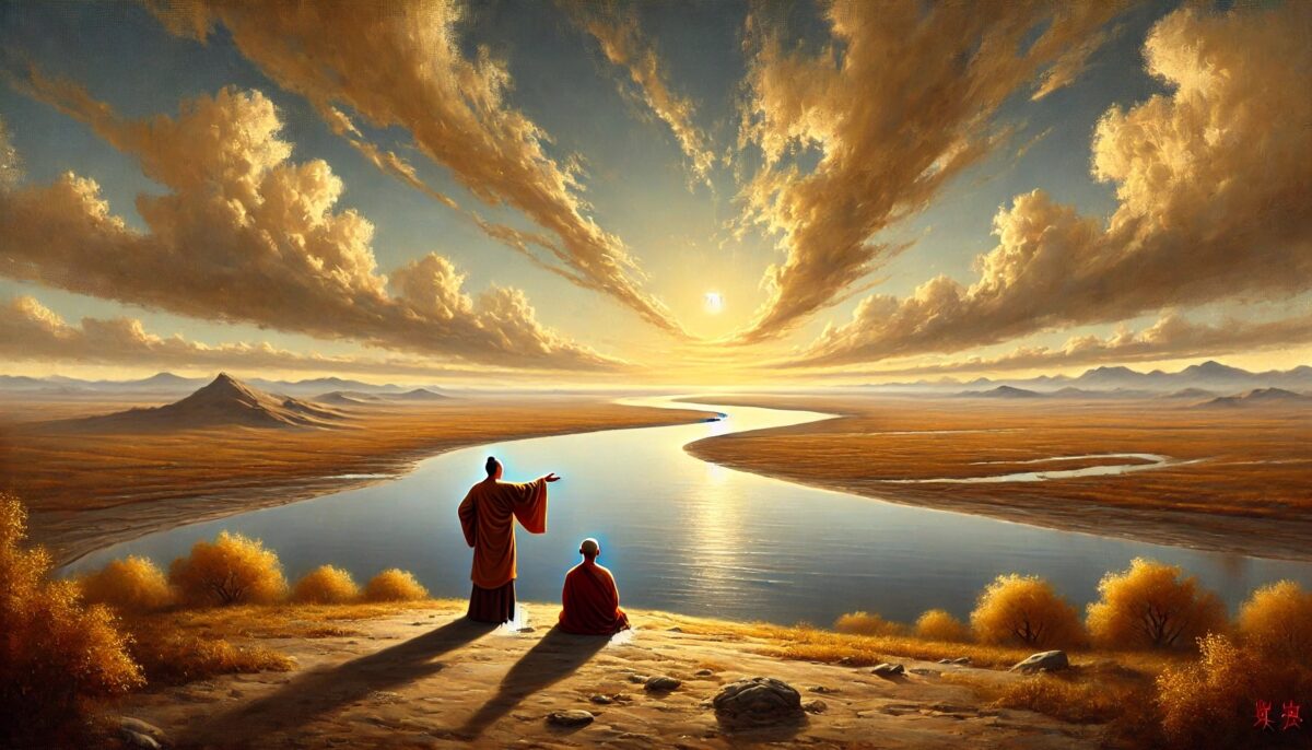 黄檗禅师用秋水与长天的景象点拨修行的广阔心境。