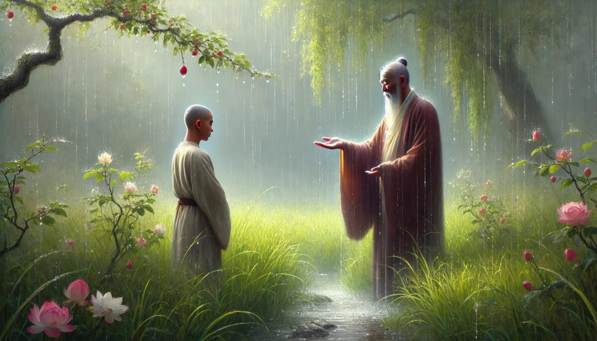 慧能禅师用春雨的象征阐明修行的柔和力量。