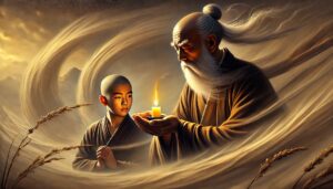 落地枯叶 ussomc10Jan 6, 2025 落地枯叶 背景: 黄檗禅师用落叶归根的景象点拨修行的返本还原。 故事内容: 弟子问黄檗:“师父,修行的最终目标是什么?” 黄檗捡起一片落叶,说:“叶落归根。” 弟子问:“为何归根?” 黄檗答:“根是源,修行的路虽远,终须回归本心。” 禅意: 修行的目标是回归本心,外在的一切努力,最终都是为了找到内心的本源。 Post Views: 90 <span class="nav-subtitle screen-reader-text">Page</span> Previous Post春雨润物 Next Post烈风中烛 Related Posts 鱼跃龙门 石头禅师用鱼跃龙门的象征解释修行的飞跃。 ussomc10Jan 18, 2025 滴水入海 黄檗禅师用水滴归海比喻修行的归一。 ussomc10Jan 18, 2025 雪中修行 慧可禅师用雪中禅坐的体验讲述修行的坚定。 ussomc10Jan 18, 2025