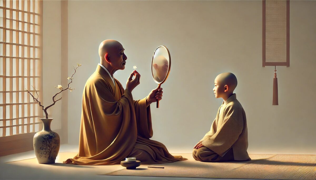 云门禅师用镜子的比喻阐释修行中的自省。