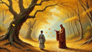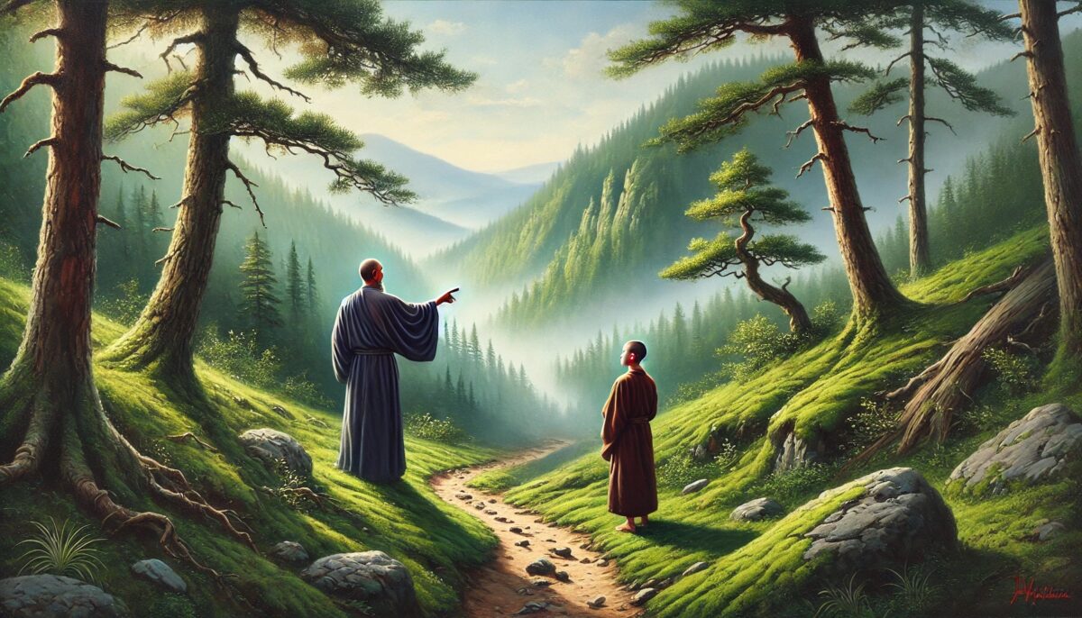 山中问路 ussomc10Jan 6, 2025 山中问路 背景: 石头禅师通过山中问路的经历解释修行的方向。 故事内容: 弟子问石头:“师父,修行的路在何处?” 石头指着山间小路说:“路就在脚下。” 弟子问:“为何总是迷失?” 石头答:“因心不专,走时看天,心不在地,路便不明。” 禅意: 修行的路在脚下,心若专注于当下,每一步都通向觉悟,不必向远方寻求。 Post Views: 90 <span class="nav-subtitle screen-reader-text">Page</span> Previous Post镜中尘 Next Post秋风扫叶 Related Posts 鱼跃龙门 石头禅师用鱼跃龙门的象征解释修行的飞跃。 ussomc10Jan 18, 2025 滴水入海 黄檗禅师用水滴归海比喻修行的归一。 ussomc10Jan 18, 2025 雪中修行 慧可禅师用雪中禅坐的体验讲述修行的坚定。 ussomc10Jan 18, 2025