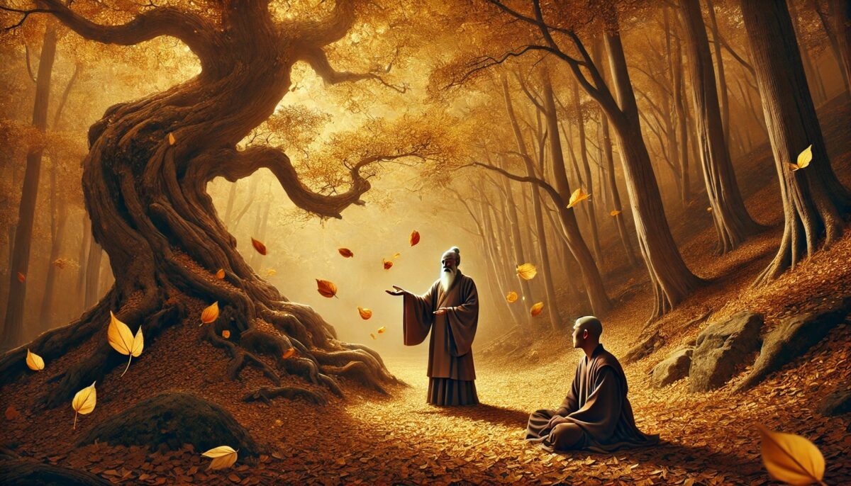 赵州说:“修行如落叶,放下执念,才能回归本性。”