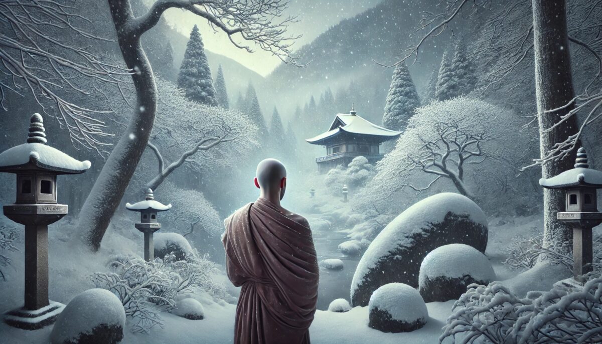 见雪开悟 ussomc10Jan 8, 2025 见雪开悟 背景: 德山禅师以自然景象领悟禅理。 故事内容: 一日,德山禅师看到大雪纷飞,感叹道: “万物何处安身?”忽然明白,雪虽覆盖万物,但一切依然自如。 禅意: 觉悟在于看到事物本质,而非表象的遮盖。 Post Views: 124 <span class="nav-subtitle screen-reader-text">Page</span> Previous Post马祖开悟Next Post观桃花开悟 Related Posts 脚步悟道 临济通过脚步声让弟子顿悟。 ussomc10Jan 16, 2025 空钵子 德山禅师用空钵象征心的空性。 ussomc10Jan 16, 2025 一炷香 云门禅师用焚香的举动点化弟子。 ussomc10Jan 16, 2025