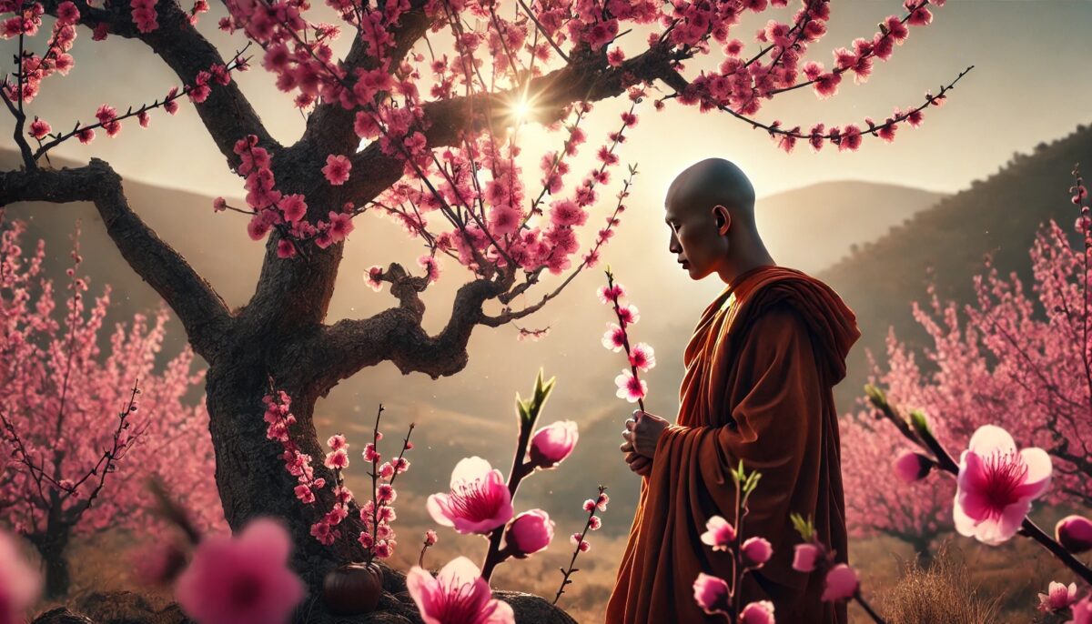 观桃花开悟 ussomc10Jan 8, 2025 观桃花开悟 背景: 赵州从自然中顿悟。 故事内容: 赵州见桃花盛开,心中一震,喃喃道: “此花不是昨日之花,我亦非昨日之我。”当下明悟。 禅意: 万物瞬息变化,悟道在于当下的觉知与无住。 Post Views: 142 <span class="nav-subtitle screen-reader-text">Page</span> Previous Post见雪开悟 Next Post断臂求法 Related Posts 脚步悟道 临济通过脚步声让弟子顿悟。 ussomc10Jan 16, 2025 空钵子 德山禅师用空钵象征心的空性。 ussomc10Jan 16, 2025 一炷香 云门禅师用焚香的举动点化弟子。 ussomc10Jan 16, 2025