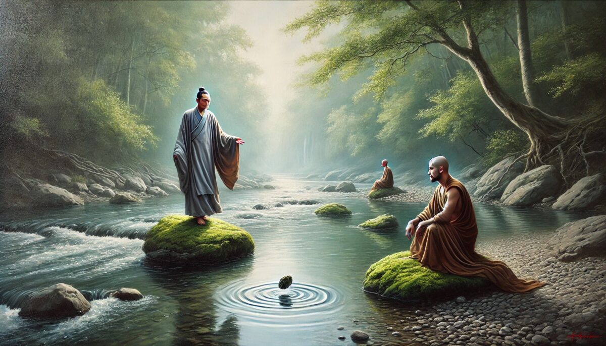 赵州说:“修行如水,虽包容万物,但石头若不放下重的本性,便不会浮起。”