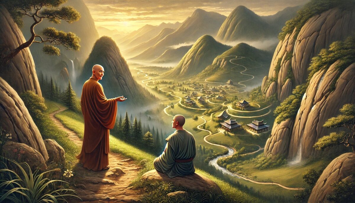 赵州禅师用山下风景的比喻解答弟子对修行成就的困惑。