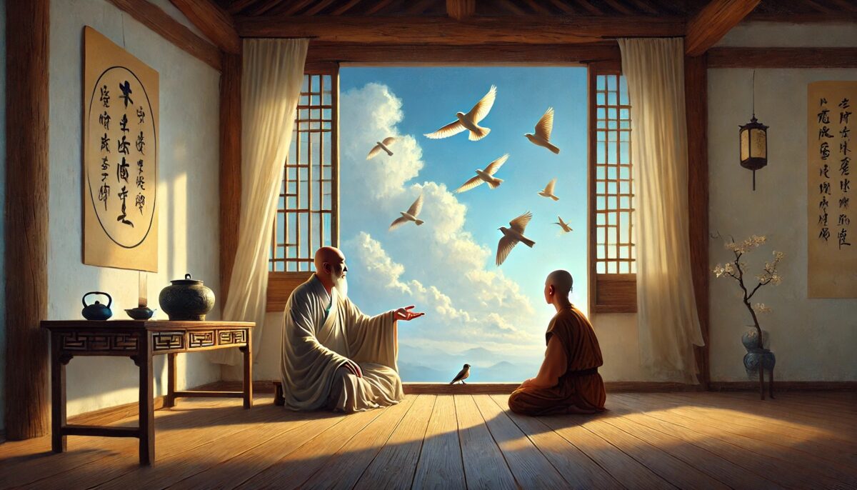 南泉禅师用飞鸟的自由教化弟子修行的轻松心态。