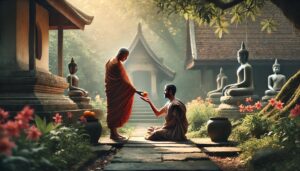 弟子的“脑袋” ussomc10Jan 11, 2025Jan 20, 2025 弟子的“脑袋” 背景: 一弟子问禅师一个极其抽象的问题。 故事内容: 弟子问:“师父,什么是禅?” 禅师反问:“你脑袋在哪里?” 弟子摸了摸自己的头:“在这里啊。” 禅师笑道:“既然脑袋还在,为何要问禅?” 禅意: 禅就是你的本来状态,问题本身往往是多余的执念。 Post Views: 72 <span class="nav-subtitle screen-reader-text">Page</span> Previous Post吃橘子的禅意 Next Post禅师与茶杯 Related Posts 我是谁 云门禅师用幽默的回答打破弟子的思维局限。 ussomc10Jan 18, 2025 风吹竹 慧能禅师用自然景象教导弟子无为而安。 ussomc10Jan 18, 2025 走路与修行 临济通过生活中的小事揭示修行的真谛。 ussomc10Jan 18, 2025