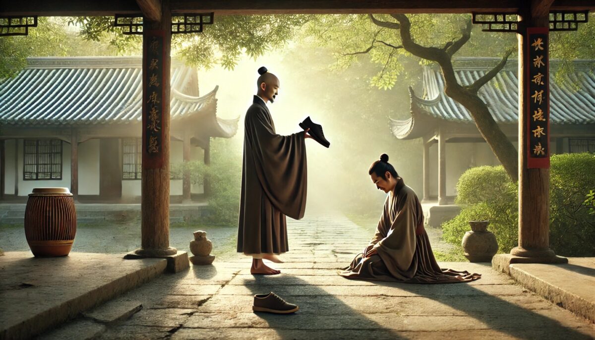 鞋子 ussomc10Jan 11, 2025 鞋子 背景: 弟子提出一个抽象的问题,赵州用行为回答。 故事内容: 弟子问赵州:“何为佛法的真谛?” 赵州脱下鞋子放在头上,离开。 弟子恍然大悟。 禅意: 佛法超越语言的表达,用行为直指真理。 Post Views: 105 <span class="nav-subtitle screen-reader-text">Page</span> Previous Post鸡蛋与石头 Next Post弟子的问题 Related Posts 我是谁 云门禅师用幽默的回答打破弟子的思维局限。 ussomc10Jan 18, 2025 风吹竹 慧能禅师用自然景象教导弟子无为而安。 ussomc10Jan 18, 2025 走路与修行 临济通过生活中的小事揭示修行的真谛。 ussomc10Jan 18, 2025
