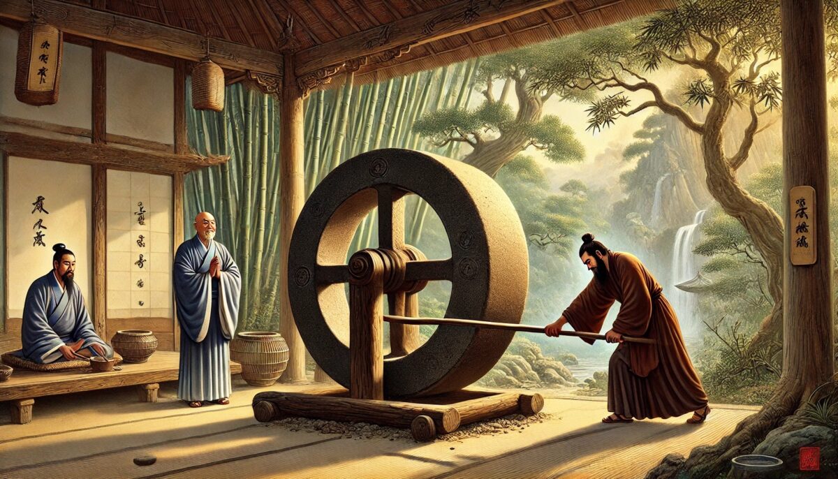 推磨悟道 ussomc10Jan 13, 2025 推磨悟道 背景: 马祖通过体力劳动,领悟佛法的本质。 故事内容: 马祖被师父安排推磨,他抱怨:“师父为何让我做这般劳作?” 师父答:“推磨也能悟道。” 马祖继续推磨,突然意识到:“磨盘虽转,中心不动。”他大悟。 禅意: 修行的关键在于找到内心的安定,无论外界如何变化。 Post Views: 115 <span class="nav-subtitle screen-reader-text">Page</span> Previous Post面壁九年 Next Post断臂求法 Related Posts 鱼跃龙门 石头禅师用鱼跃龙门的象征解释修行的飞跃。 ussomc10Jan 18, 2025 滴水入海 黄檗禅师用水滴归海比喻修行的归一。 ussomc10Jan 18, 2025 雪中修行 慧可禅师用雪中禅坐的体验讲述修行的坚定。 ussomc10Jan 18, 2025