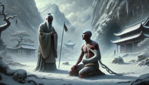 灯下悟道 ussomc10Jan 13, 2025Jan 22, 2025 灯下悟道 背景: 永嘉玄觉在阅读经典时,突然大悟。 故事内容: 永嘉在灯下读《楞伽经》,读到“离一切相,即名诸佛”,顿时豁然开朗。 他叹道:“原来佛性自具足,一切无须外求!” 禅意: 修行的体验在于领悟,佛性原本具足,只需自觉。 Post Views: 90 <span class="nav-subtitle screen-reader-text">Page</span> Previous Post断臂求法 Next Post修行体验 Related Posts 鱼跃龙门 石头禅师用鱼跃龙门的象征解释修行的飞跃。 ussomc10Jan 18, 2025 滴水入海 黄檗禅师用水滴归海比喻修行的归一。 ussomc10Jan 18, 2025 雪中修行 慧可禅师用雪中禅坐的体验讲述修行的坚定。 ussomc10Jan 18, 2025