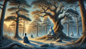 饭后修行 ussomc10Jan 13, 2025 饭后修行 背景: 临济禅师用饭后散步的体验说明修行的自在。 故事内容: 弟子问临济:“师父,修行后应做什么?” 临济说:“吃饭,散步,看山,听风。” 弟子不解:“这些平常事如何是修行?” 临济笑答:“修行就是自在,不离生活。” 禅意: 修行并非特殊的状态,而是融入生活,活在每一刻的自在体验中。 Post Views: 108 <span class="nav-subtitle screen-reader-text">Page</span> Previous Post静坐体验 Next Post直心是道场 Related Posts 鱼跃龙门 石头禅师用鱼跃龙门的象征解释修行的飞跃。 ussomc10Jan 18, 2025 滴水入海 黄檗禅师用水滴归海比喻修行的归一。 ussomc10Jan 18, 2025 雪中修行 慧可禅师用雪中禅坐的体验讲述修行的坚定。 ussomc10Jan 18, 2025