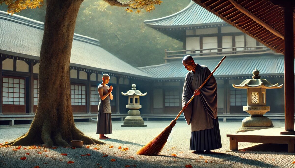 扫地的禅意 ussomc10Jan 14, 2025 扫地的禅意 背景: 禅师用扫地的日常行为回答弟子的问题。 故事内容: 弟子问:“师父,烦恼如何清除?” 禅师拿起扫帚,说:“扫地时,只看垃圾,不看扫帚。” 禅意: 清理烦恼不必执着于方法,只需专注于目标。 Post Views: 120 <span class="nav-subtitle screen-reader-text">Page</span> Previous Post鸡鸣即禅 Next Post禅师与扇子 Related Posts 秋叶与水流 南泉通过落叶与流水的自然现象讲解修行的放下。 ussomc10Jan 19, 2025 看云卷舒 百丈禅师用自然景象点化弟子修行的无执。 ussomc10Jan 19, 2025 借柴点火 云门禅师用借柴的行为讲述修行的缘起。 ussomc10Jan 19, 2025