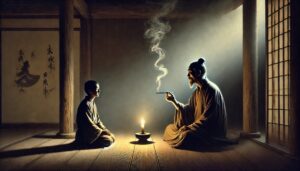 无雪 ussomc10Jan 14, 2025Jan 22, 2025 无雪 背景: 慧可用环境的变化领悟禅意。 故事内容: 一冬日,慧可站在达摩面前,请求传法。 慧可说:“师父,天地虽寒,但我心中火热,求您开示。” 达摩笑着说:“雪原本无寒,是你的心感觉到了冷。” 慧可顿悟:“外境本无苦乐,一切源于内心。” 禅意: 觉悟在于明白苦乐并非来自外在环境,而是内心的感知。 Post Views: 131 <span class="nav-subtitle screen-reader-text">Page</span> Previous Post井水开悟Next Post烛光开悟 Related Posts 脚步悟道 临济通过脚步声让弟子顿悟。 ussomc10Jan 16, 2025 空钵子 德山禅师用空钵象征心的空性。 ussomc10Jan 16, 2025 一炷香 云门禅师用焚香的举动点化弟子。 ussomc10Jan 16, 2025