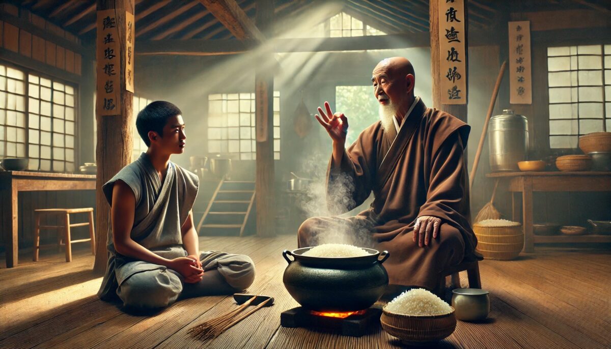 米与饭 ussomc10Jan 15, 2025Jan 20, 2025 米与饭 背景: 黄檗禅师用生活中的比喻说明修行的过程。 故事内容: 弟子问黄檗:“师父,修行的意义是什么?” 黄檗反问:“米是如何变成饭的?” 弟子回答:“加水煮熟。” 黄檗点头:“修行如煮饭,心如米,定如水,火候到了,自然成熟。” 禅意: 修行是一个自然的过程,需耐心等待,不能急于求成。 Post Views: 134 <span class="nav-subtitle screen-reader-text">Page</span> Previous Post咖啡的香气轮盘Next Post敲木鱼 Related Posts 鱼跃龙门 石头禅师用鱼跃龙门的象征解释修行的飞跃。 ussomc10Jan 18, 2025 滴水入海 黄檗禅师用水滴归海比喻修行的归一。 ussomc10Jan 18, 2025 雪中修行 慧可禅师用雪中禅坐的体验讲述修行的坚定。 ussomc10Jan 18, 2025