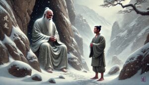 野狐故事 ussomc10Jan 15, 2025 野狐故事 背景: 百丈用幽默的公案点化弟子因果的智慧。 故事内容: 老者问百丈:“修行者是否落入因果?” 百丈答:“不昧因果。” 老者豁然开悟,脱离野狐身。 弟子问:“为何是野狐?” 百丈笑答:“若执着于因果,便如狐入洞,出不得。” 禅意: 修行者不否认因果,但超越对因果的执着,了然本性。 Post Views: 82 <span class="nav-subtitle screen-reader-text">Page</span> Previous Post打狗禅Next Post破雪求法 Related Posts 我是谁 云门禅师用幽默的回答打破弟子的思维局限。 ussomc10Jan 18, 2025 风吹竹 慧能禅师用自然景象教导弟子无为而安。 ussomc10Jan 18, 2025 走路与修行 临济通过生活中的小事揭示修行的真谛。 ussomc10Jan 18, 2025